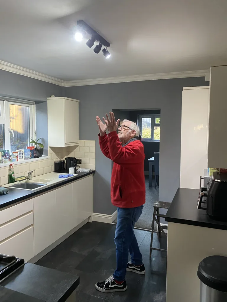 Graham got in touch needing help with a kitchen light fitting. At eighty years old, he’s no longer stable enough on ladders to do this sort of work safely himself. When we heard about his situation, we offered to carry out the work for free under our Positive Connections initiative, which is exactly what the programme is designed for. The electrical work itself was straightforward enough, just fitting a new light in the kitchen where he needed it.