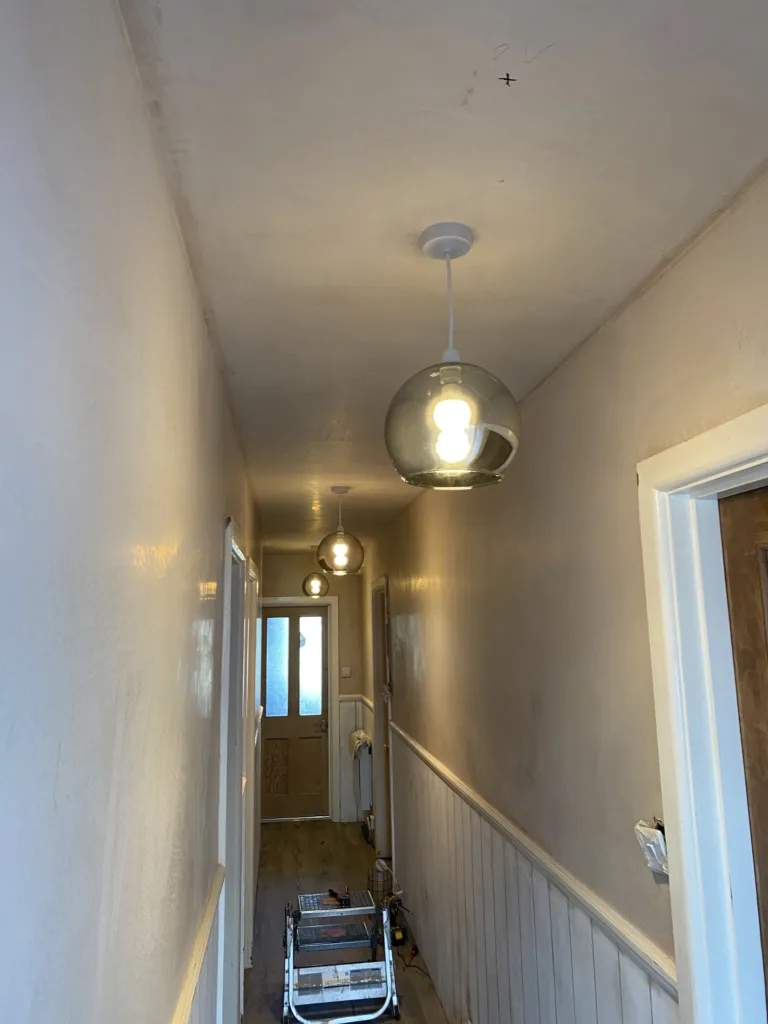 Working in a Quintrell Downs property, we installed three pendant light fittings throughout a hallway to create a more welcoming entrance space. The installation involved connecting the new lights to the existing circuit and integrating them with the current two-way switching system, allowing the homeowner to control all hallway lighting from multiple points throughout their home.