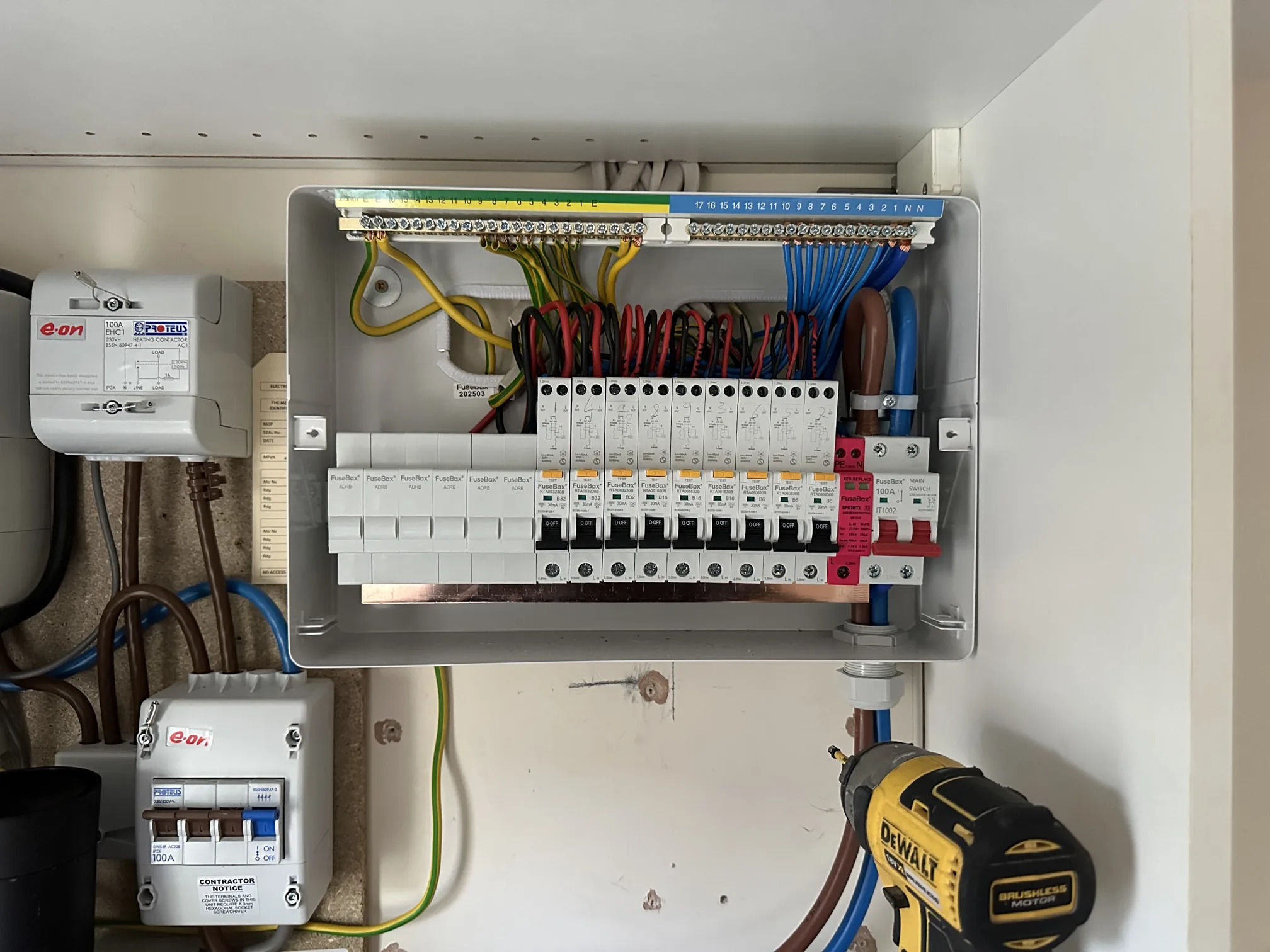 The physical installation involved careful removal of both existing boards, assessment of all incoming circuits, and methodical connection to the new consumer unit. Each circuit was identified, tested for condition, and connected to an appropriately rated RCBO. Cable labelling received attention throughout, providing clear identification for future reference. The homeowner would be able to identify which breaker controlled which circuits without guesswork.