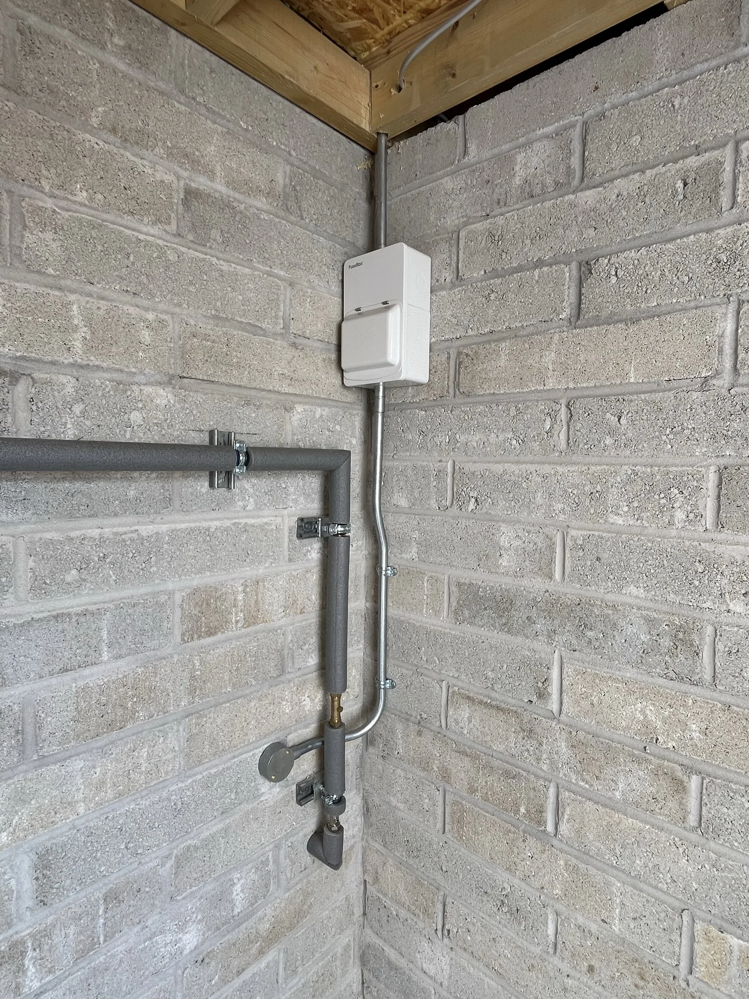 The galvanised conduit system provides both practical cable protection and visual appeal that aligns with the property’s design aesthetic. The metallic finish creates a clean, industrial look that many homeowners prefer over plastic alternatives. This styling choice demonstrates how functional electrical installations can contribute positively to a property’s overall appearance.