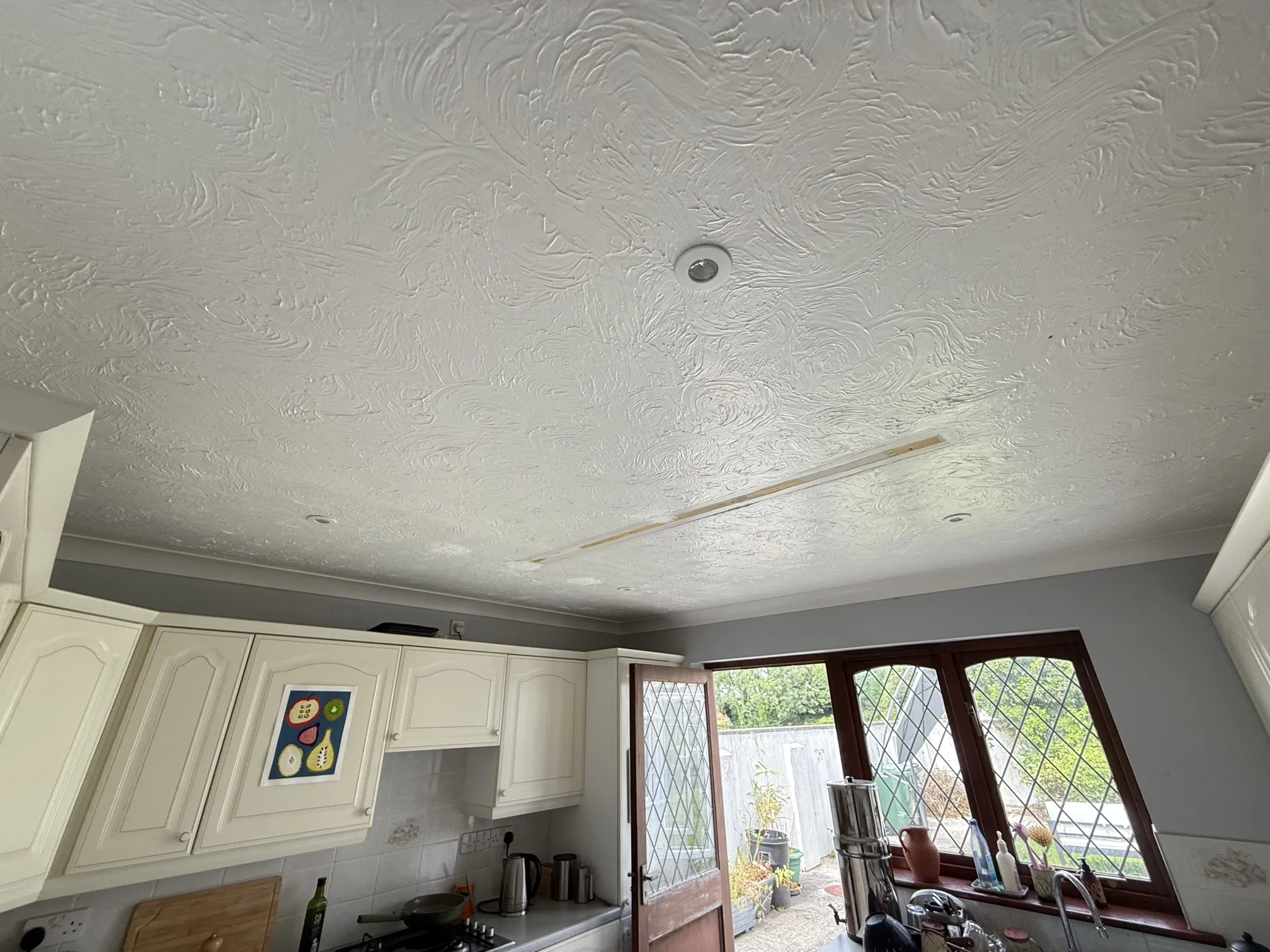 The kitchen received a significant lighting overhaul with the removal of an outdated batten light fitting. In its place, six warm white LED downlights were carefully positioned to provide optimal task lighting over food preparation and cooking areas. Access for the installation was gained through the first-floor void space, requiring careful carpet lifting and precise cable routing to minimise disruption to the home’s interior.