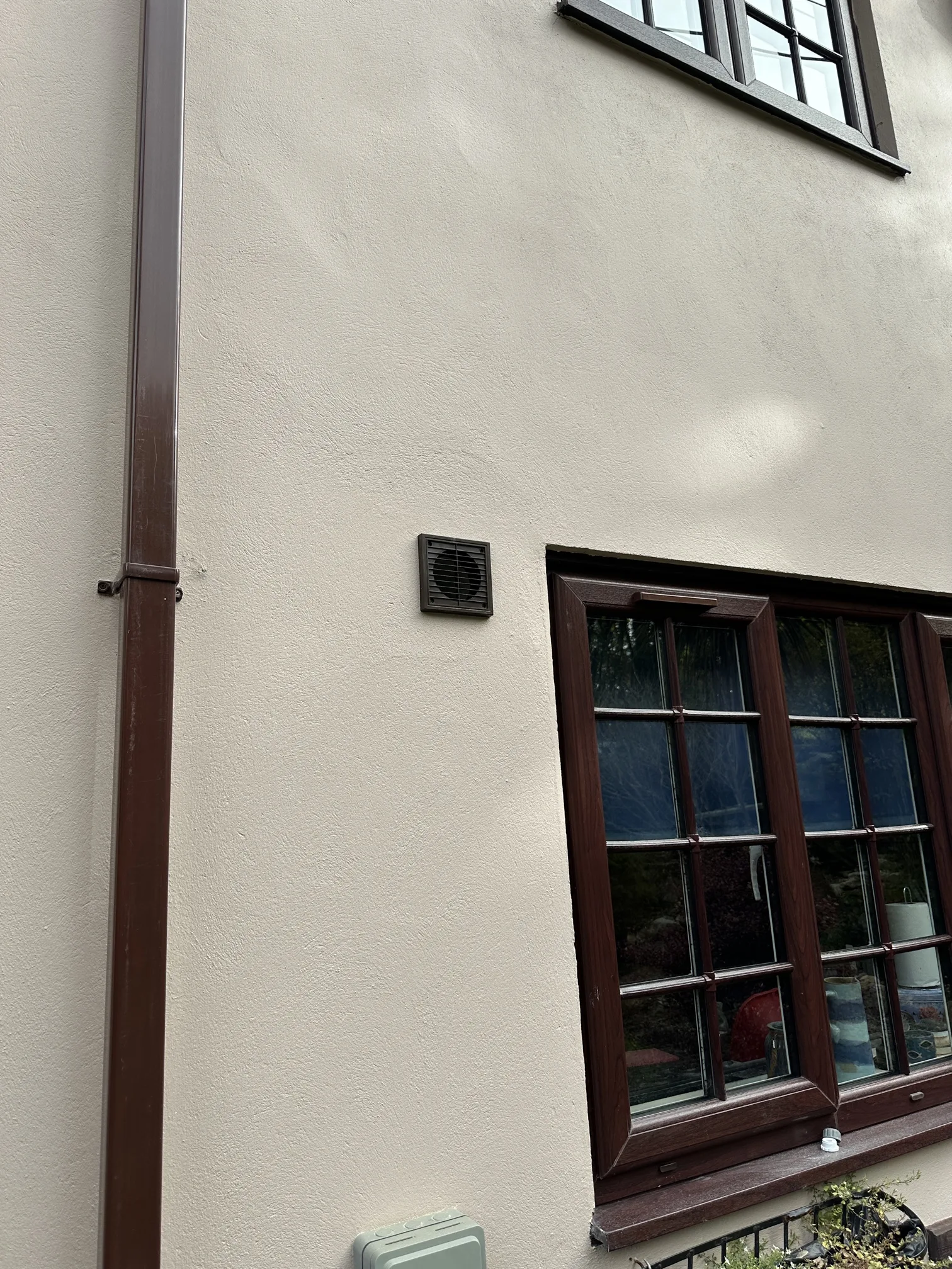Colour-matching the external vent to the existing brown guttering might seem like a minor detail, but it demonstrates attention to the overall appearance of the installation. Properties, particularly those in more traditional settings, often benefit from ventilation solutions that work effectively whilst remaining visually unobtrusive. The brown vent grille achieves this balance, providing necessary airflow whilst blending with the existing external colour scheme.