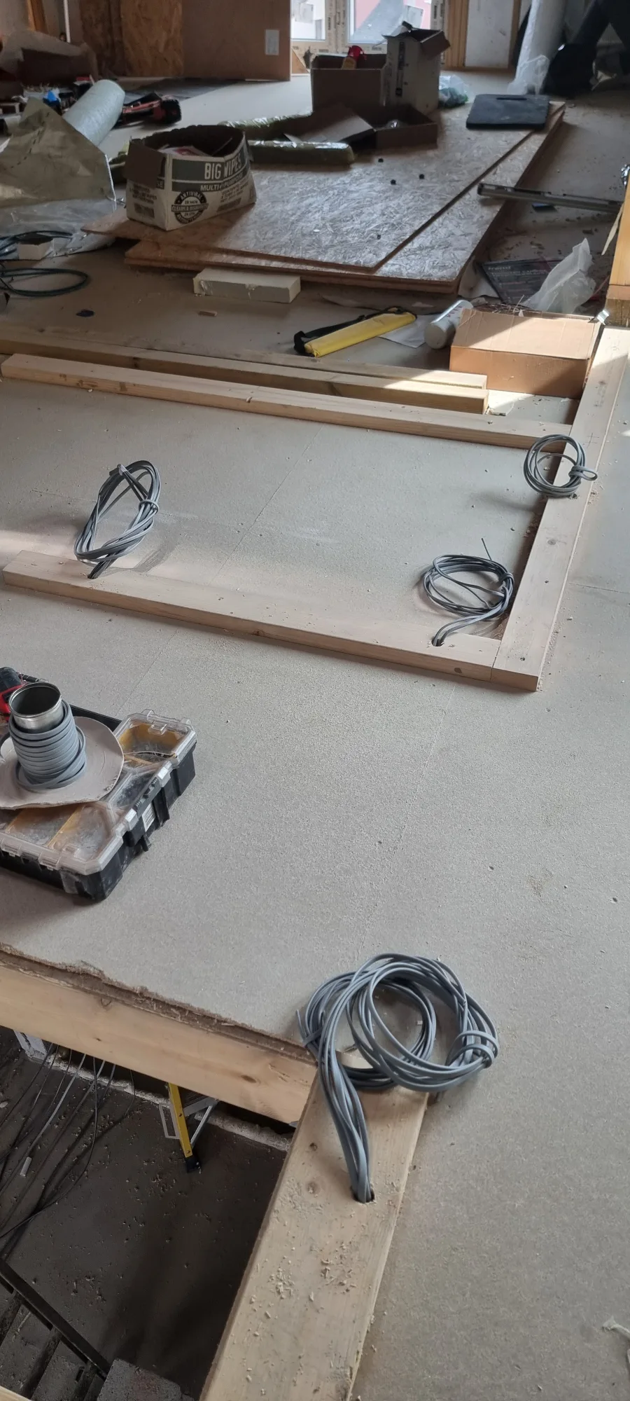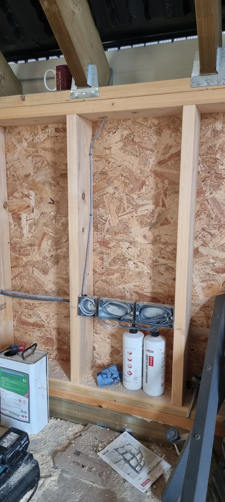 Floor void installations are another key part of this first fix. Running cables through floor joists requires drilling at the correct positions and angles to maintain structural integrity while creating clear cable runs. Each penetration through timber needs to be positioned according to building regulations, avoiding weak points and keeping cables away from where floor fixings might go later.