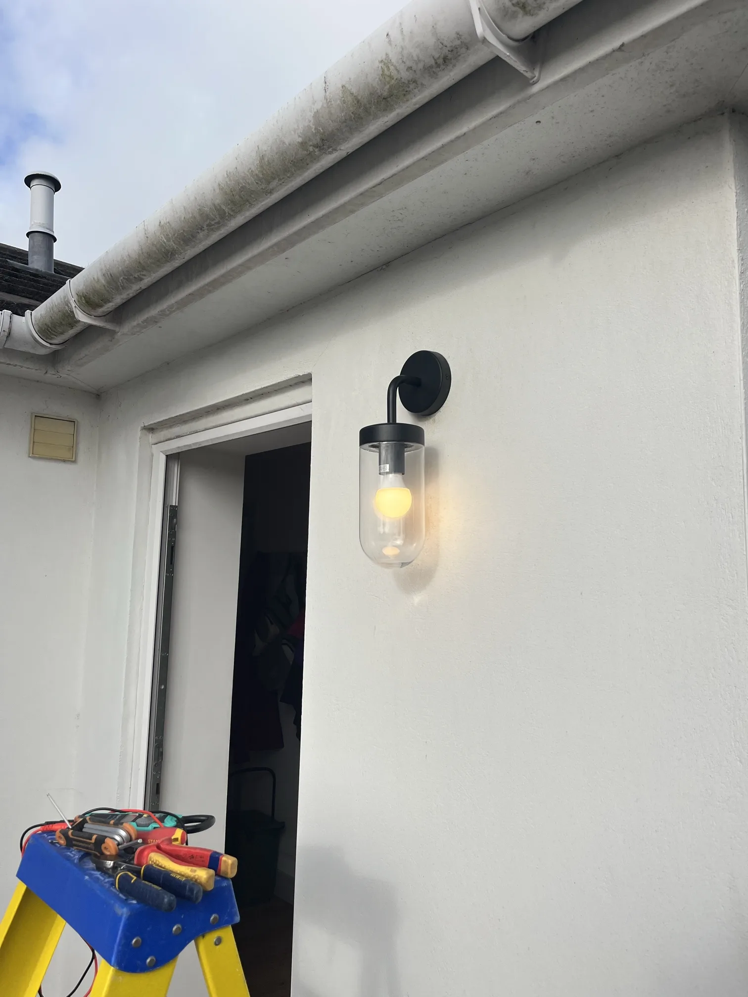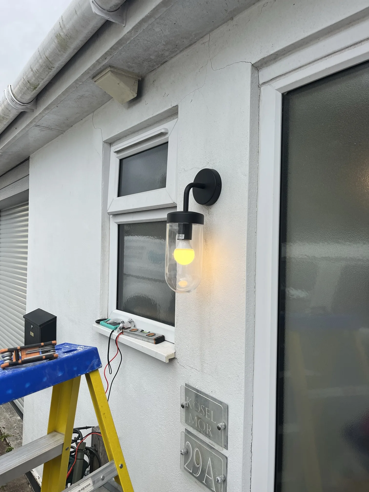 Our tests indicated an insulation resistance reading that was lower than regulations permit, confirming a fault somewhere on the circuit. By systematically isolating different parts of the circuit and re-testing, we were able to narrow the problem down to the outdoor lighting. Water had likely found its way into one of the old fittings, creating a pathway for electricity to leak to earth and causing the MCB to trip. The client had already purchased a set of smart, contemporary outdoor lights to replace the old ones, so our task was to remove the faulty units and install the new ones correctly. This involved not only fitting them securely to the wall but also making sure that every connection was properly terminated and sealed against the elements to prevent the same problem from happening again.